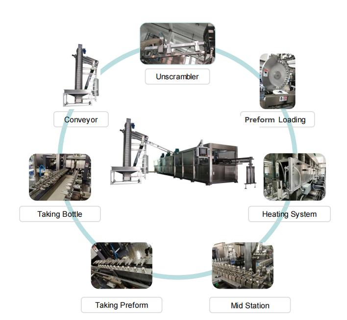 SIV series fully automatic Blowing Machine is a high performance linear line type bottle blowing machine which is newly developed according to IV solution industry requirement. It can meet different requirement of different size (100-1000ml), with capacity range from 2000 bottle/hour to 20000 bottle/hour. This machine has the feature of automatic, humanized and intelligent with stable performance and quick and simple maintenance. It has the characteristics of high production efficiency, more energy saving and low production cost, etc.